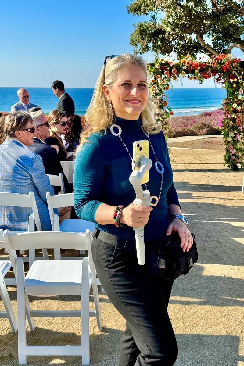 This way, everyone can be fully present without needing to pull out their phones and Angela knows exactly what to do with her phone, her gimbal on your wedding day!